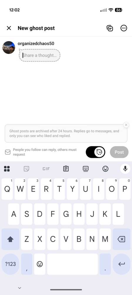 Threads says ghost posts will disappear after 24 hours, and any replies will automatically go into your messages inbox. Likes and replies will be private to the original poster, and no one can see them while the post is live.